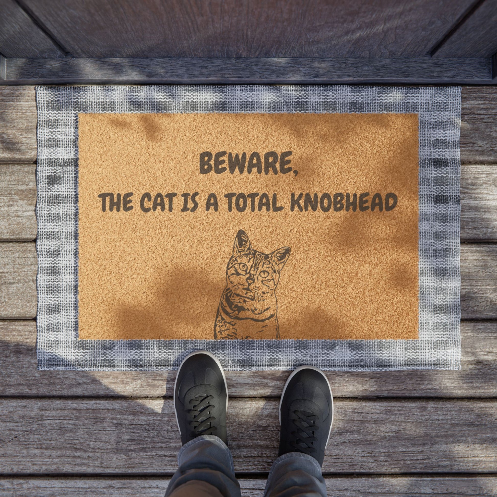 Funny Pet Doormat – “Beware, The Cat Is A Total Knobhead” Welcome Mat | Pet Lover Gift, Cat Owner Home Decor, Funny Housewarming Gift, Outdoor Entry Mat