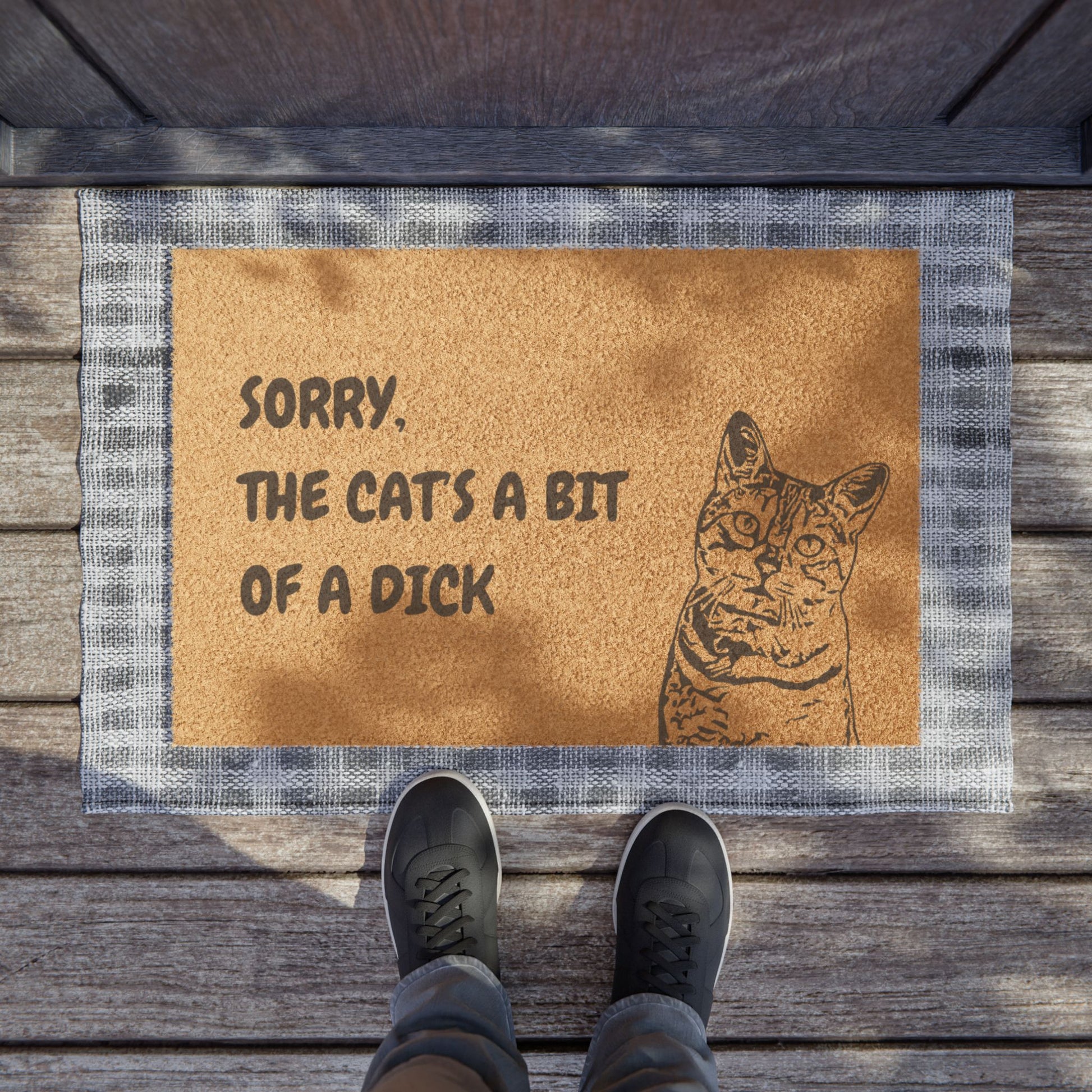 Funny Pet Doormat – “Sorry, the Cat’s A Bit Of A Dick” Welcome Mat | Pet Lover Gift, Cat Owner Home Decor, Funny Housewarming Gift, Outdoor Entry Mat