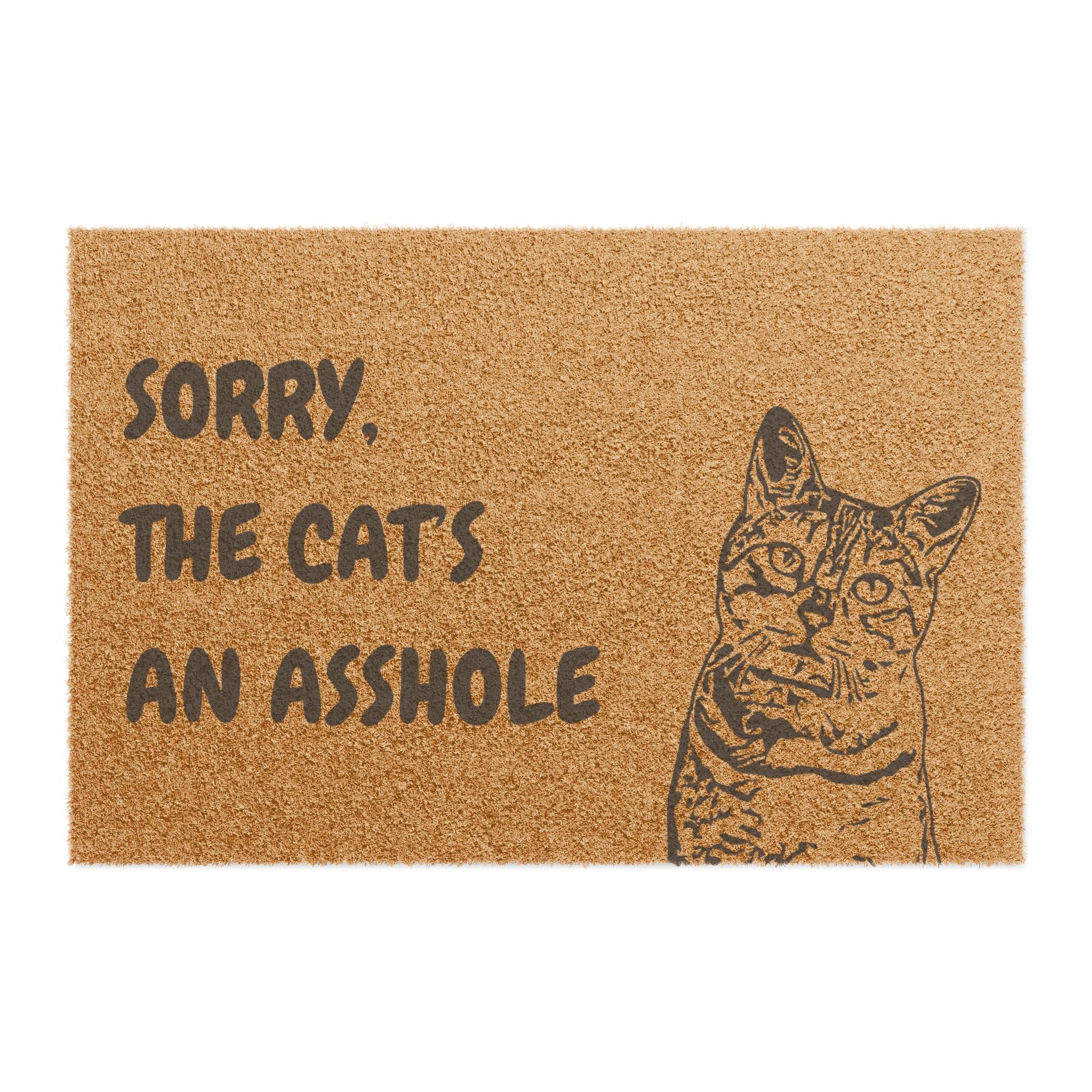 Funny Pet Doormat – “Sorry, the Cat’s An Asshole” Welcome Mat | Pet Lover Gift, Cat Owner Home Decor, Funny Housewarming Gift, Outdoor Entry Mat